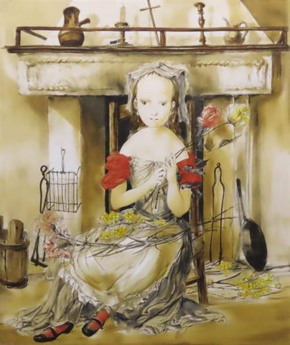 暖炉の前の少女