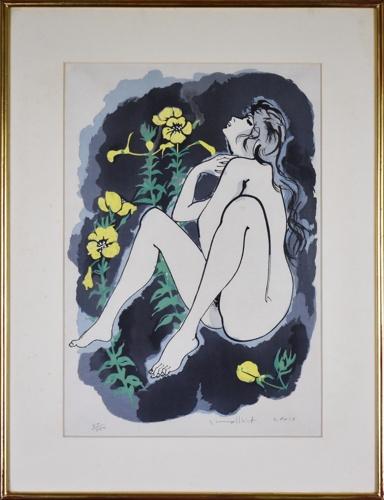 花束を持つ裸婦