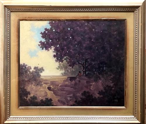 墨絵 「利根の渡し」