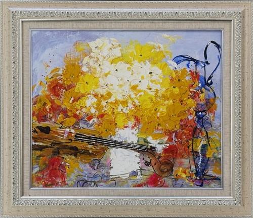 洋画(油絵)10号「楽器と花」