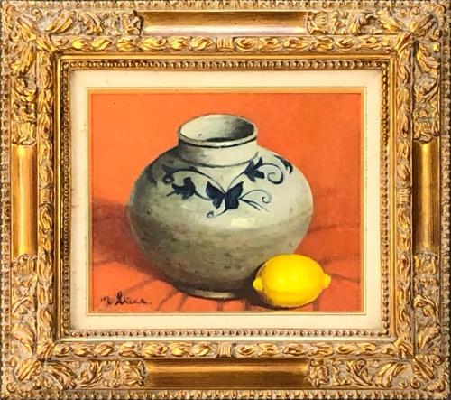 油彩画3号 「李朝壺とレモン」