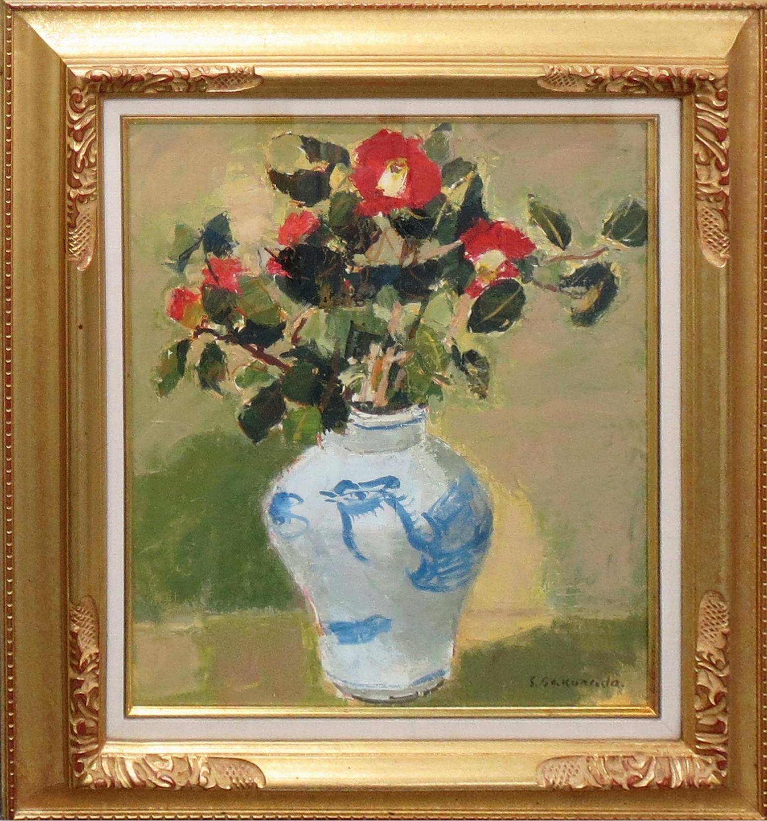白い花瓶の椿
