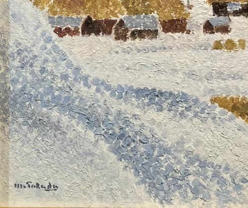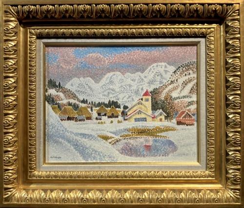 版画 「桃の咲く笛吹川のほとり」