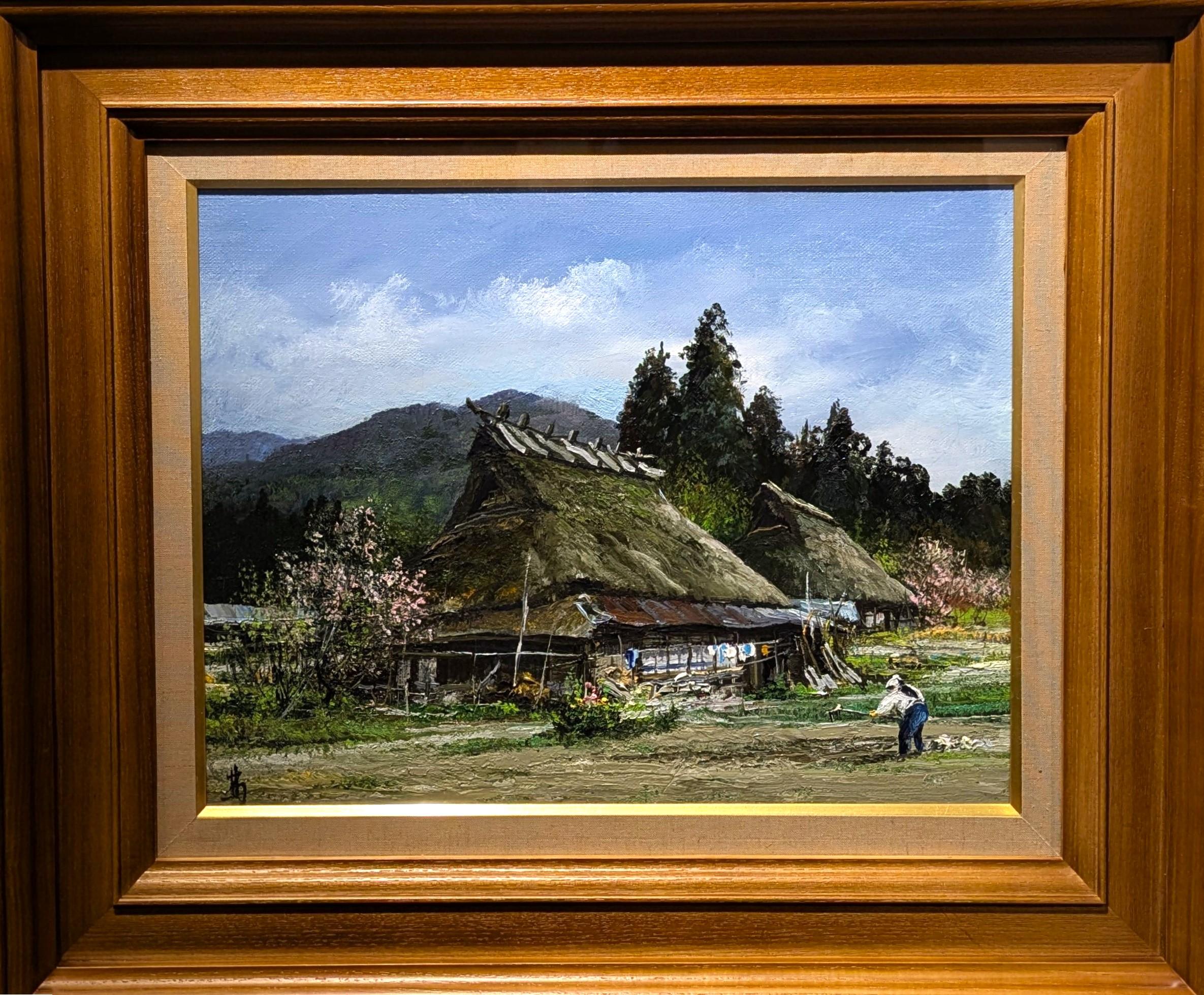 油彩画 色紙 「京都 美山の春」