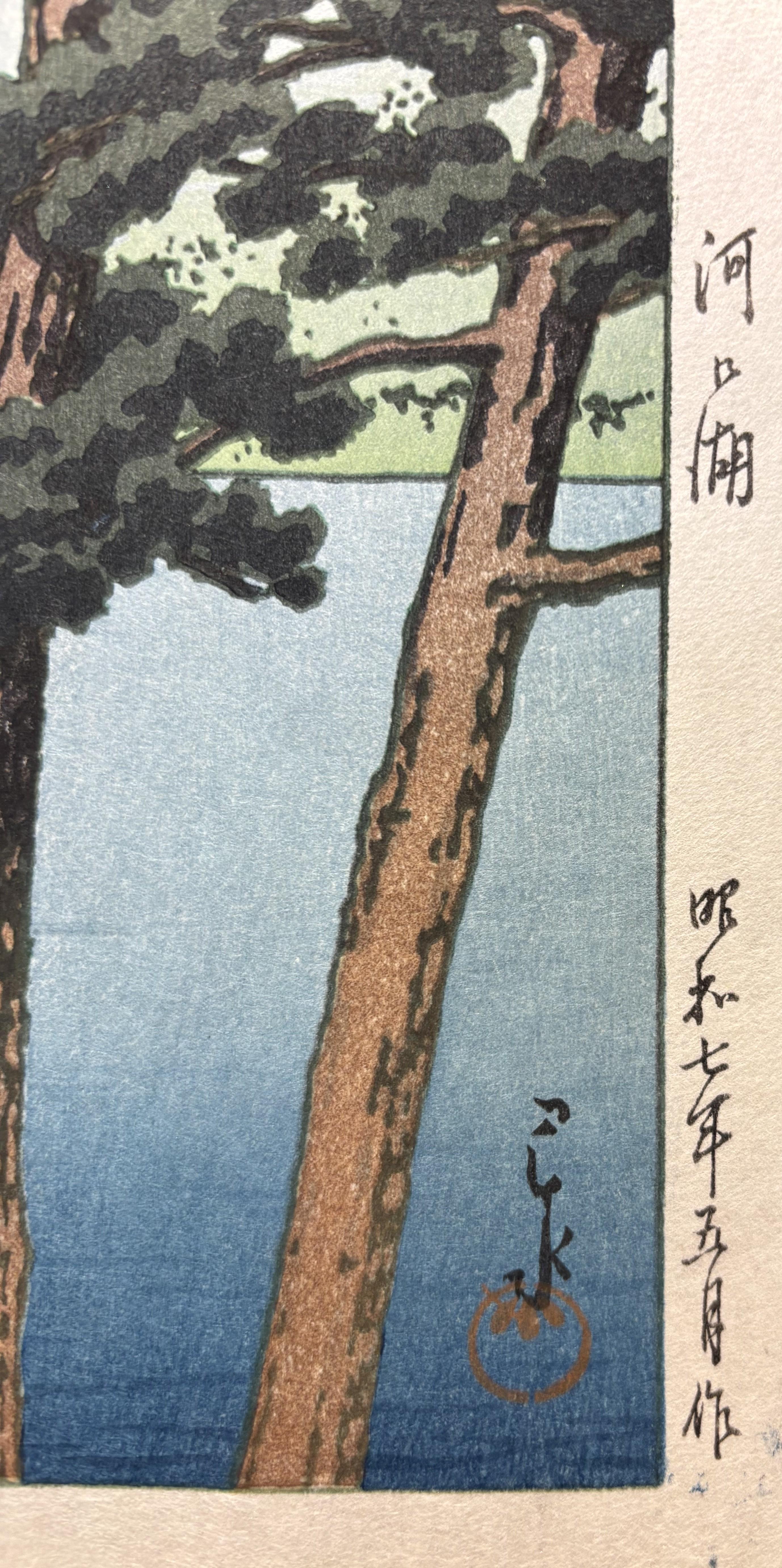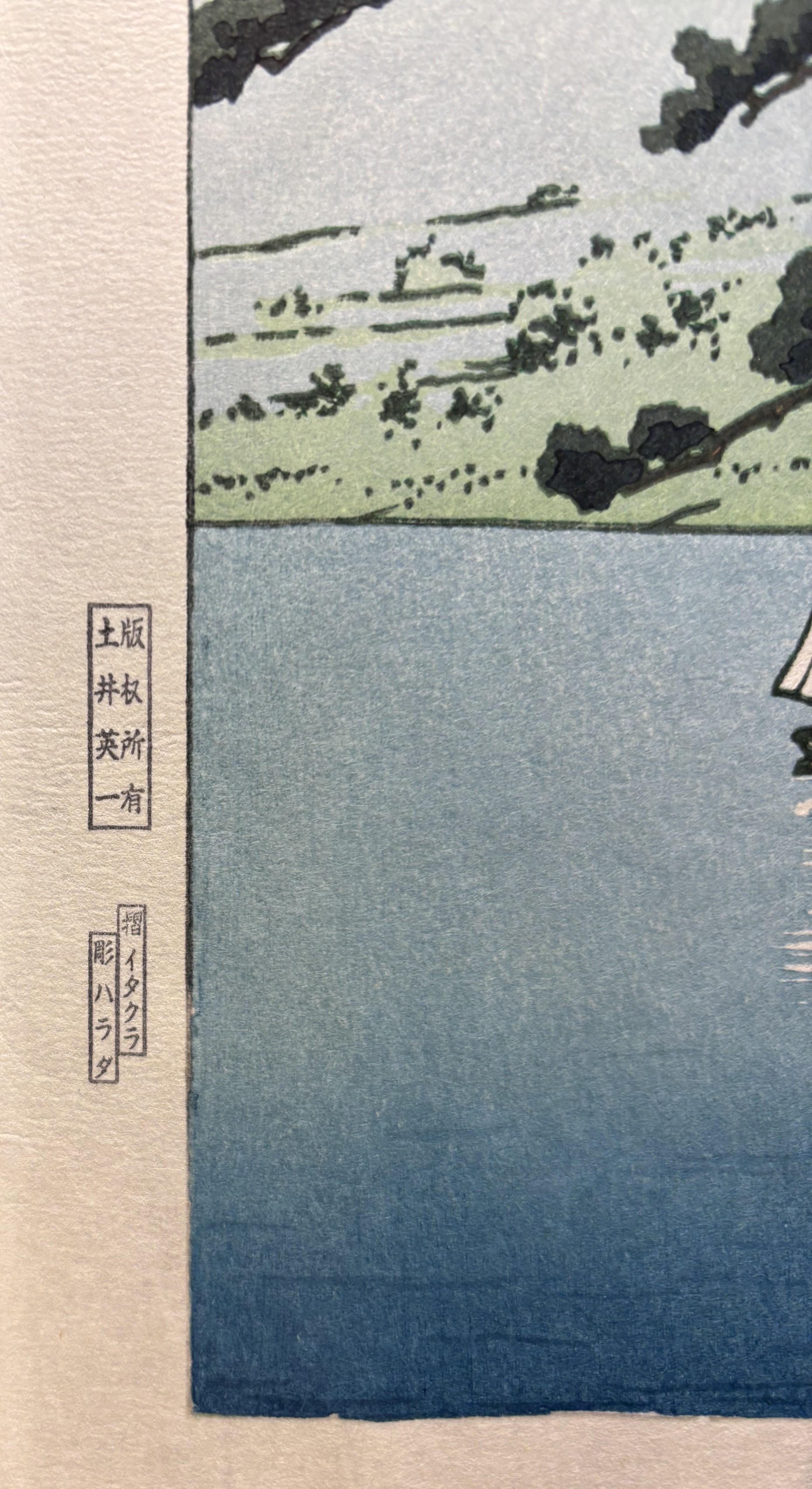木版画 「暮るゝ雪(江戸川)」