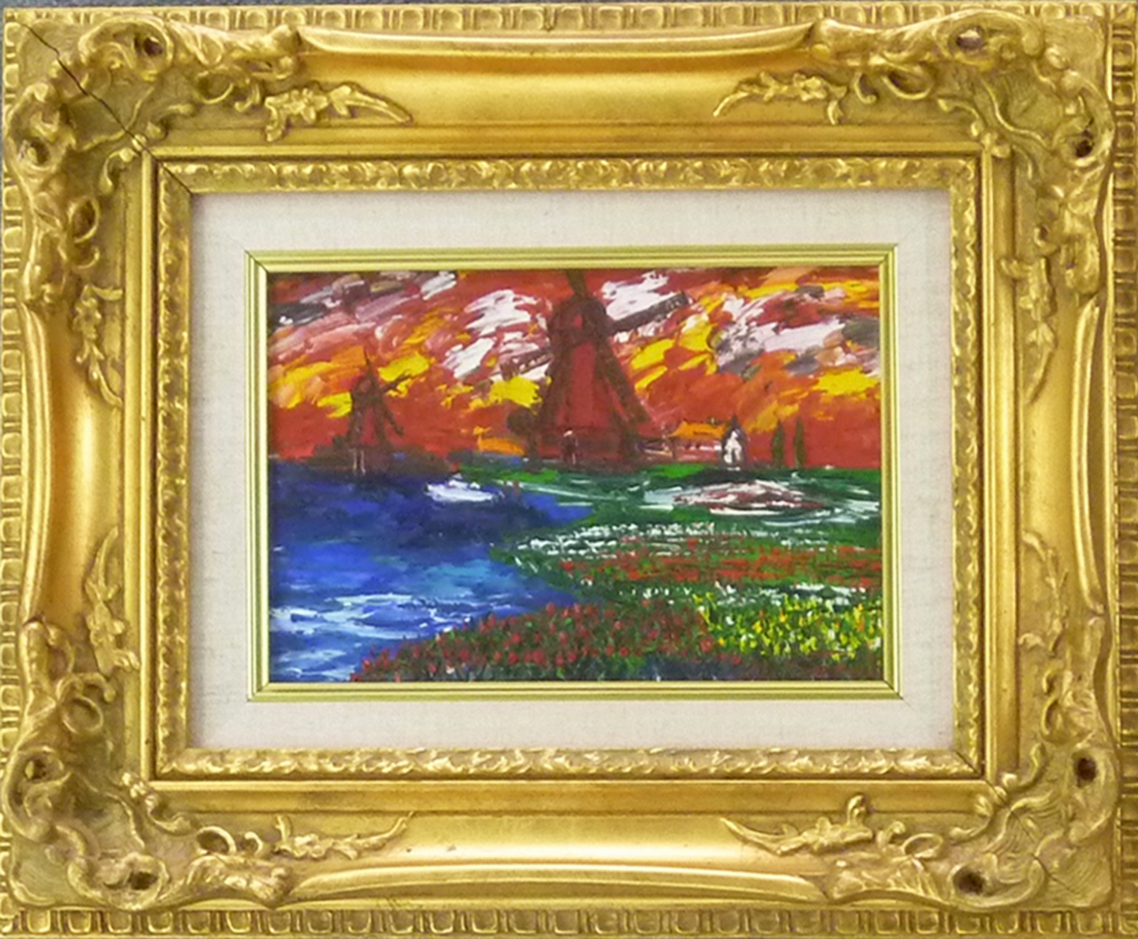 風車と花畑という、オランダならではの風景を描いた作品です。