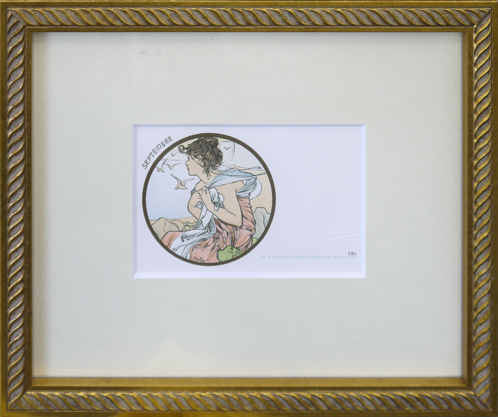 ミュシャが美術月刊誌の表紙として制作していた作品を元にしたポストカードサイズのリトグラフ。赤いポピーに囲まれた女性が印象的な作品です。