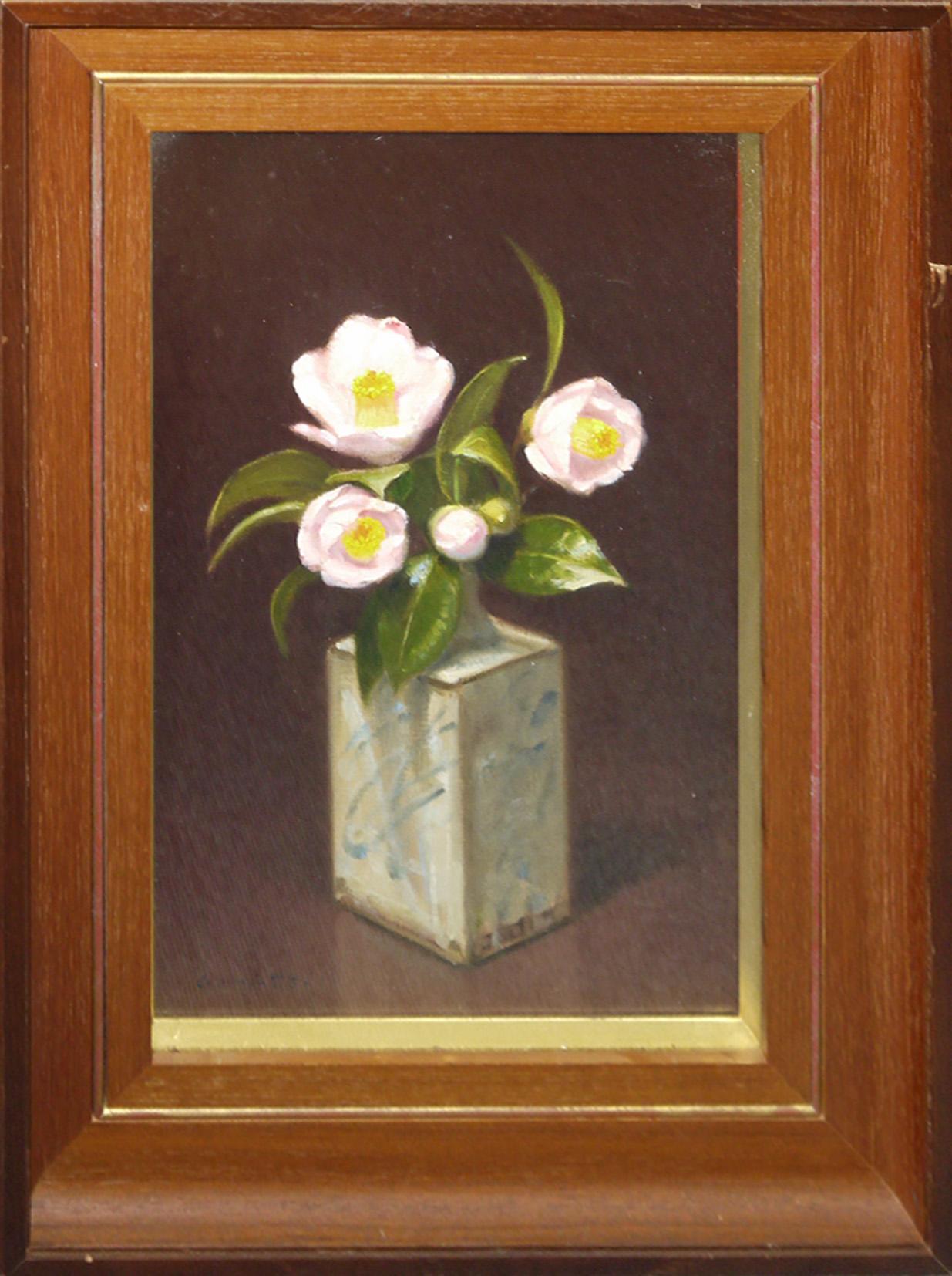 油彩画10P 「赤椿(フランス壺)」